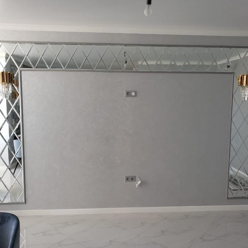 Использована серебряная зеркальная плитка «вытянутый ромб».